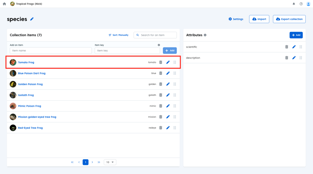 Once you have opened your chosen collection you can begin to add styling to the individual items therein: