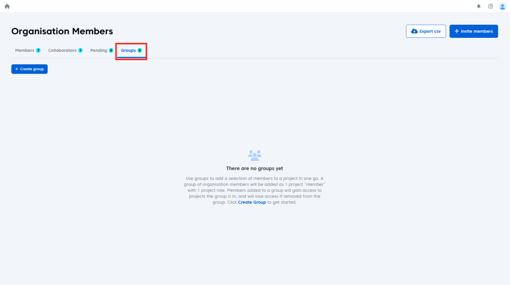 - Then click the ‘Groups’ tab on the ‘Organisation Members’ page.