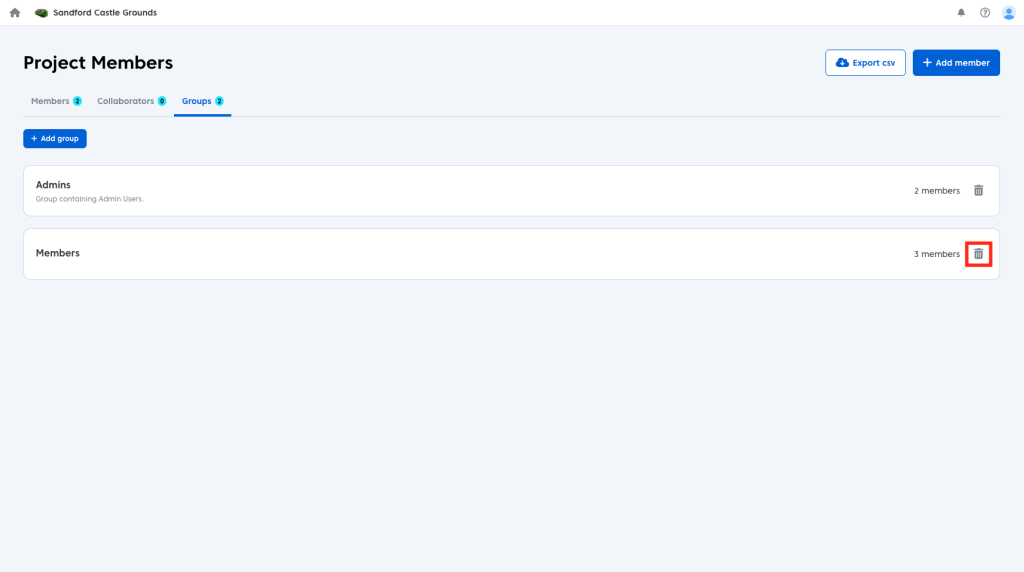 - Click the ‘bin’ icon next to the group you wish to remove.