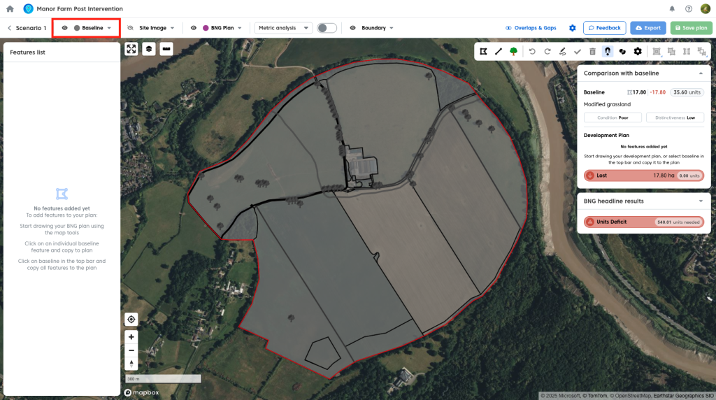 - Select a baseline feature on the map.