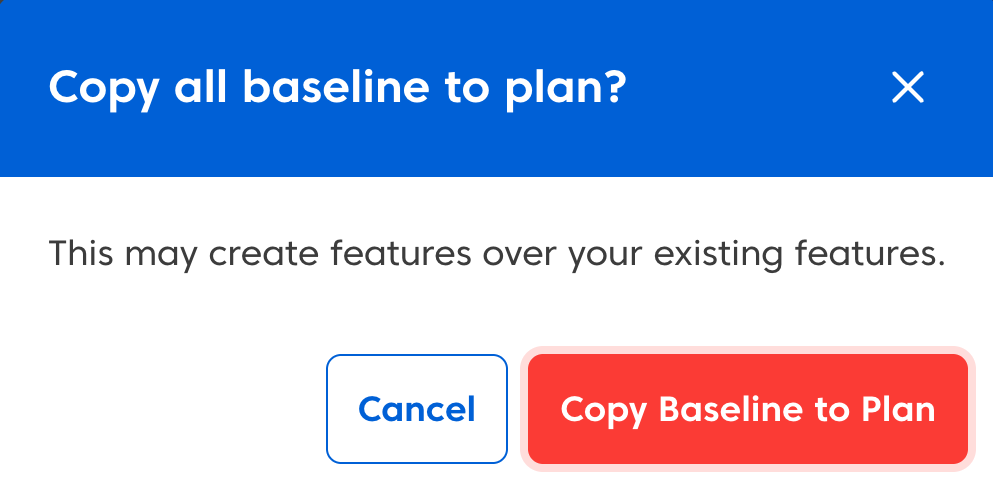 - Select the option to copy the baseline into your plan.